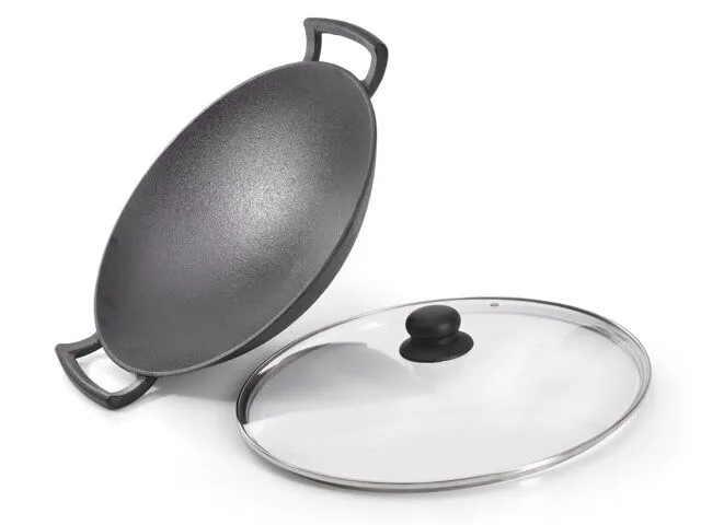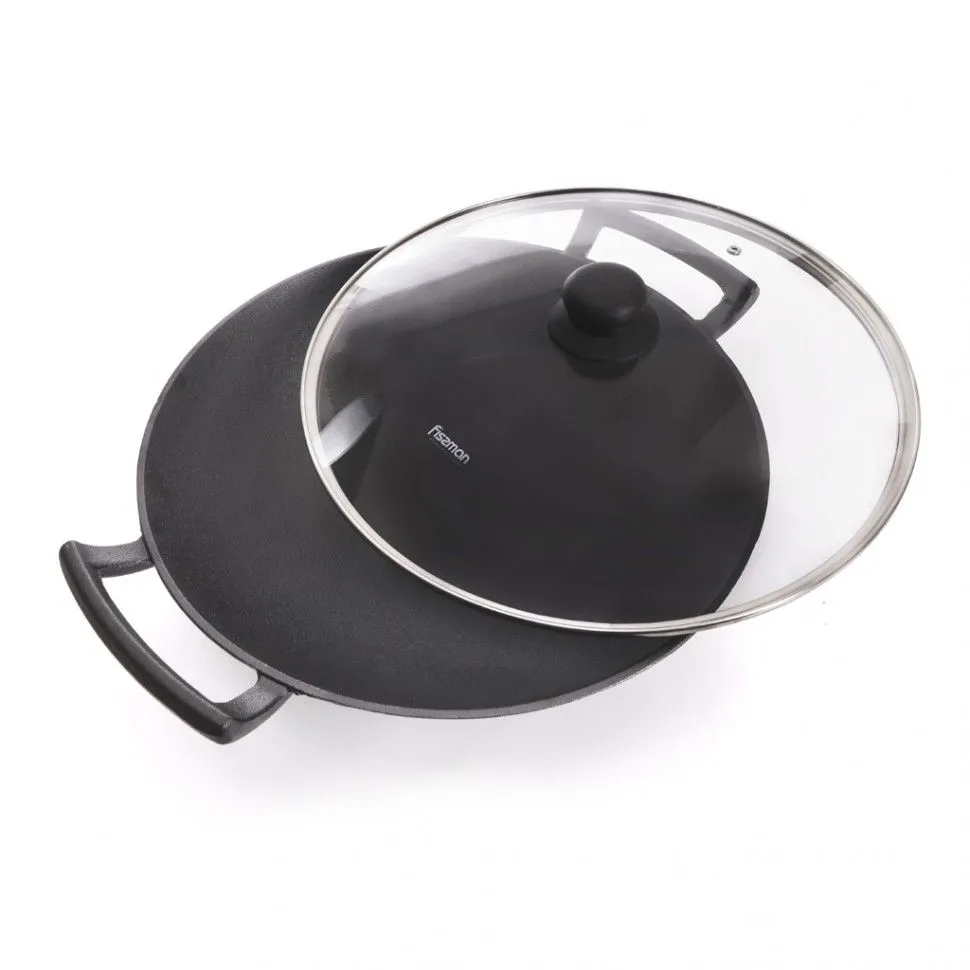 4145 FISSMAN Вок 35x10,4см / 4,85л со стеклянной крышкой (чугун) Ручки - чугун Крышка - стекло