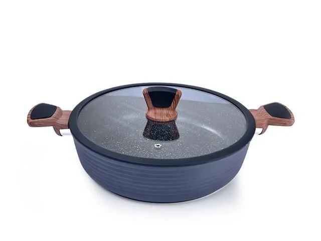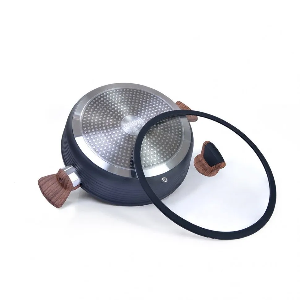 4306 FISSMAN Сотейник DIAMOND GREY 4,1л 28x7,5см с крышкой (с антипригарным покрытием EcoStone) Крышка - стекло Ручки - бакелит Индукция
