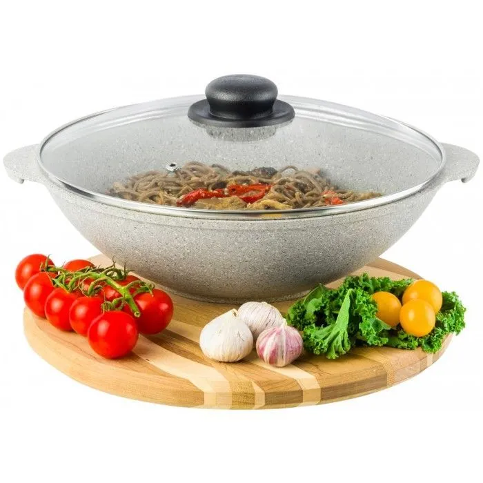 #Сковорода ВОК 28 см ГАРМОНИЯ ВКУСА "Серый агат" 33,5*29,5*13,5 см, 3 л, с крышкой ф28, высота без крышки - 8,3 см, высота внутренней части - 7,7 см,