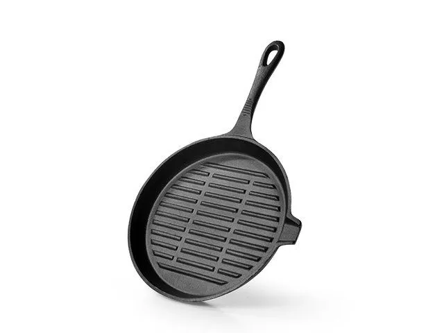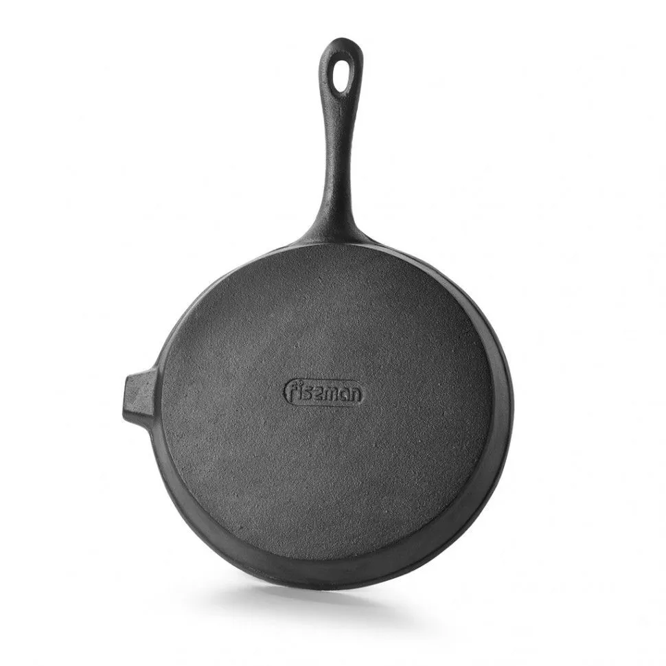 4125 FISSMAN Сковорода-гриль 22x2,5см круглая (чугун), Рифленое дно, Со сливом