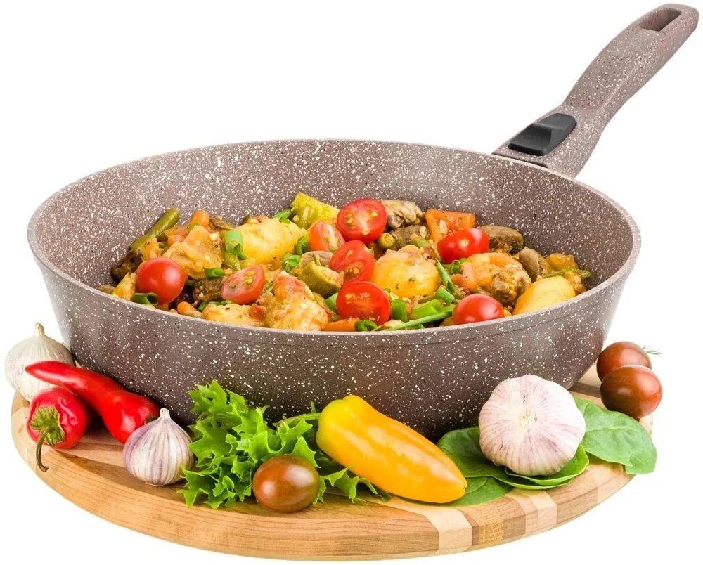 Сковорода глубокая 28 см ГАРМОНИЯ ВКУСА "Коричневый мрамор" ИНДУКЦИЯ 48*29*12,5 см, с крышкой ф28, ручка - 19 см