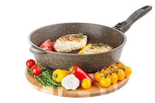 Сковорода - гриль круглая 28 см ГАРМОНИЯ ВКУСА "Коричневый опал" 51,5*29*10 см, без крышки, съемная ручка 20 см