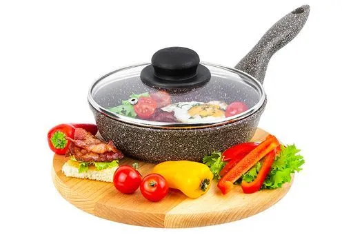Сковорода глубокая 18 см ГАРМОНИЯ ВКУСА "Коричневый опал" 33,5*19*10 см, с крышкой ф18, ручка - 14,5 см