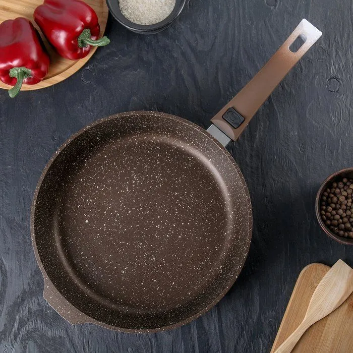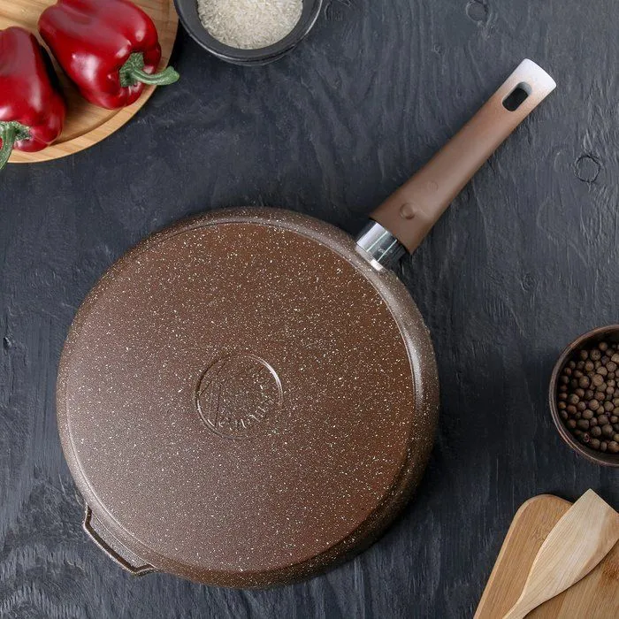 Сковорода 280/65мм с ручкой, АП (темный мрамор)