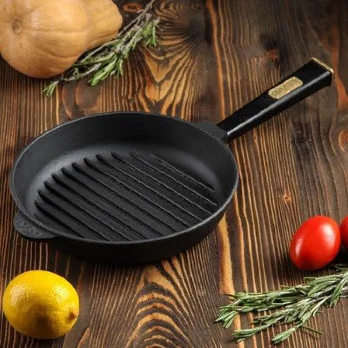Сковорода чугунная гриль ТМ "BRIZOLL" 240х40 мм с ручкой "Optima-Black" 3779904