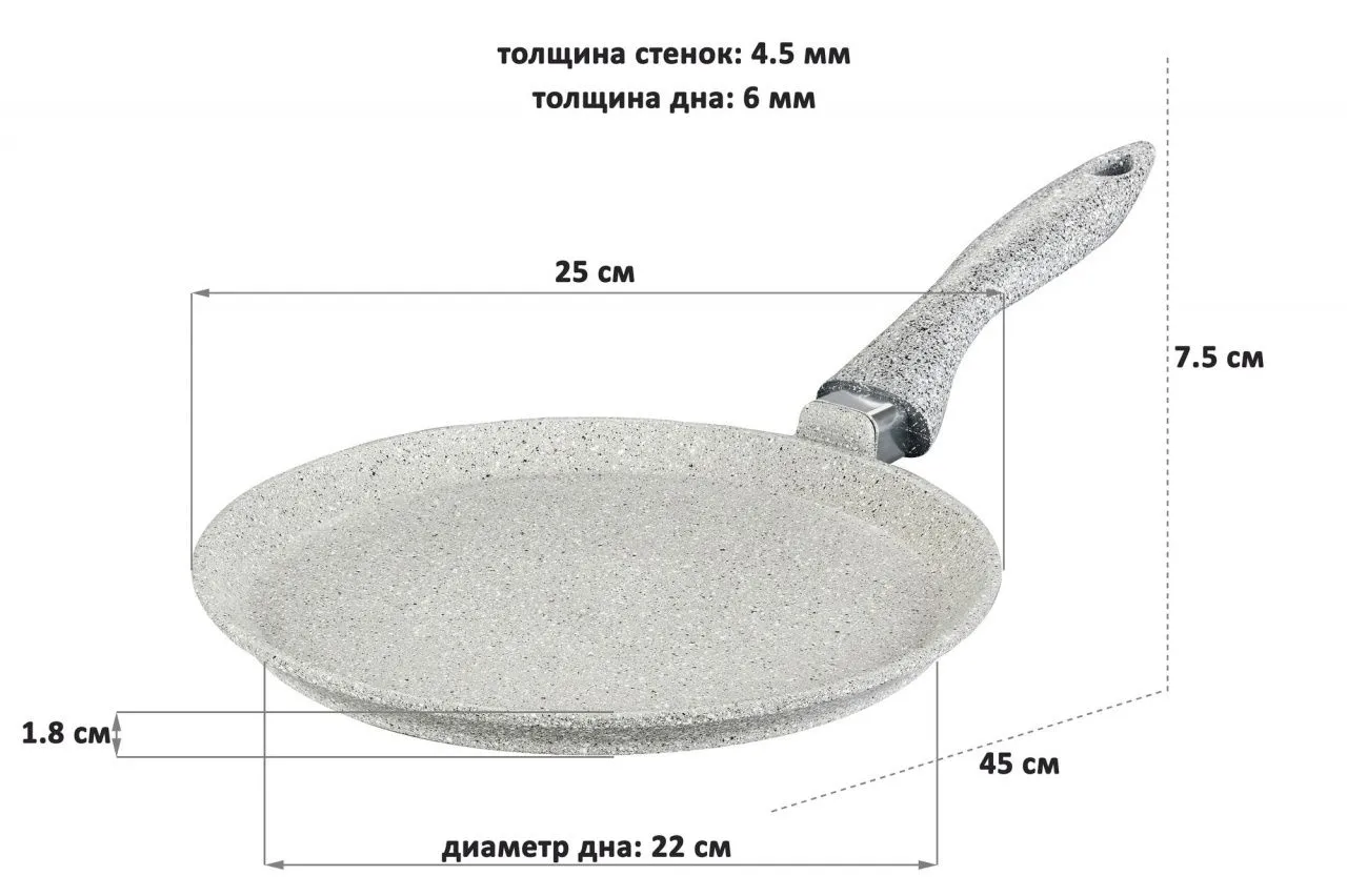 Сковорода блинная 24 см ГАРМОНИЯ ВКУСА "Серый агат" 45*25*7,5 см, ручка - 20 см, высота сковороды - 1,8 см, 2-х сл антипр покр PFLUON
