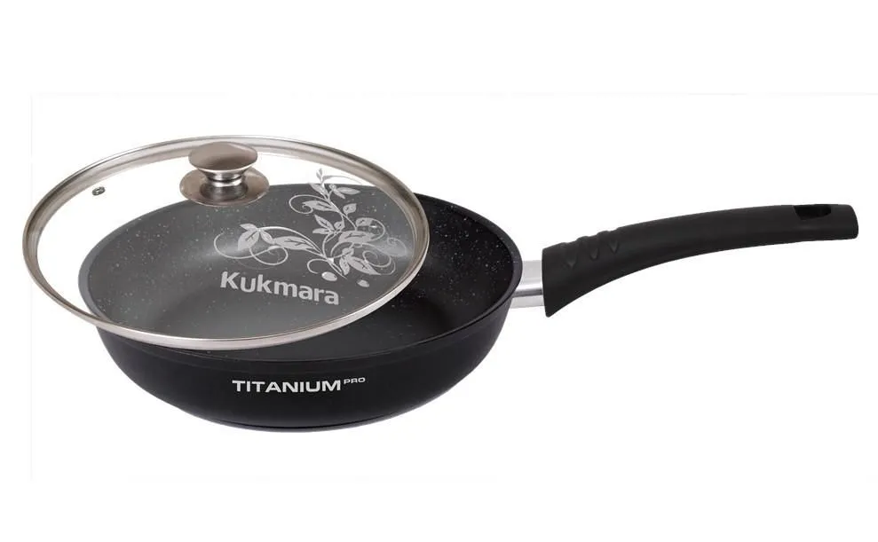 Сковорода 260мм с ручкой, стекл. крышкой АП линия "Titanium pro"