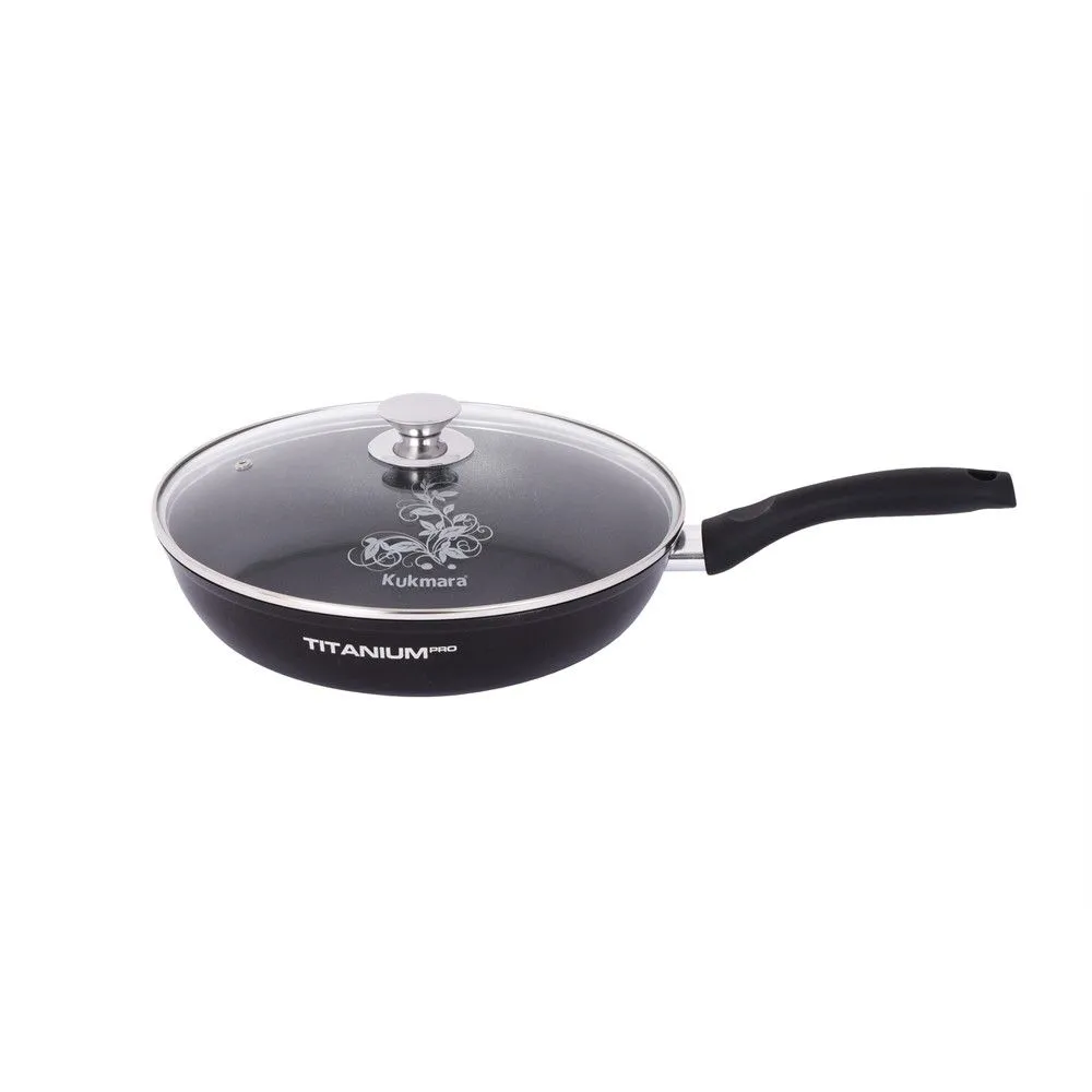 Сковорода 280мм с ручкой, стекл. крышкой АП линия "Titanium pro"