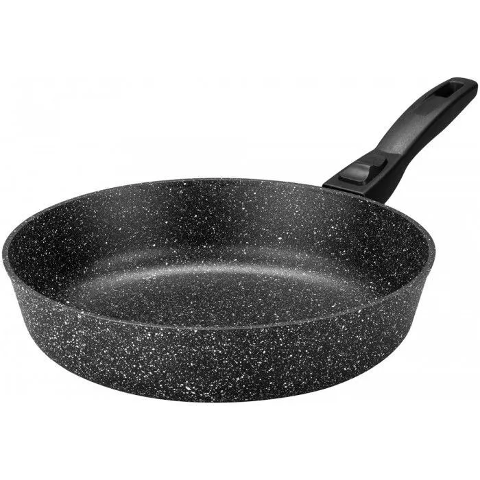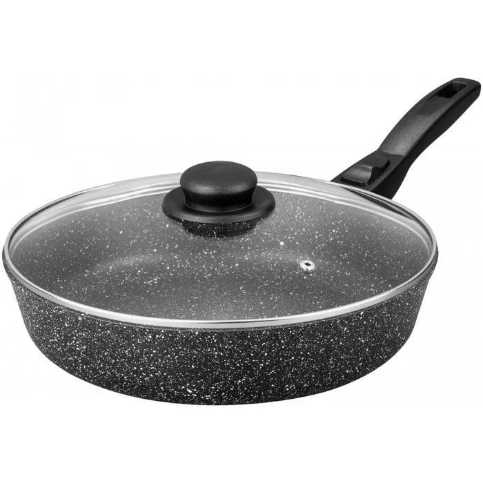 Сковорода глубокая 28 см ГАРМОНИЯ ВКУСА "Черный мрамор" ИНДУКЦИЯ, съемная ручка 20 см, с крышкой ф28, 3-х слойное а/п покрыт
