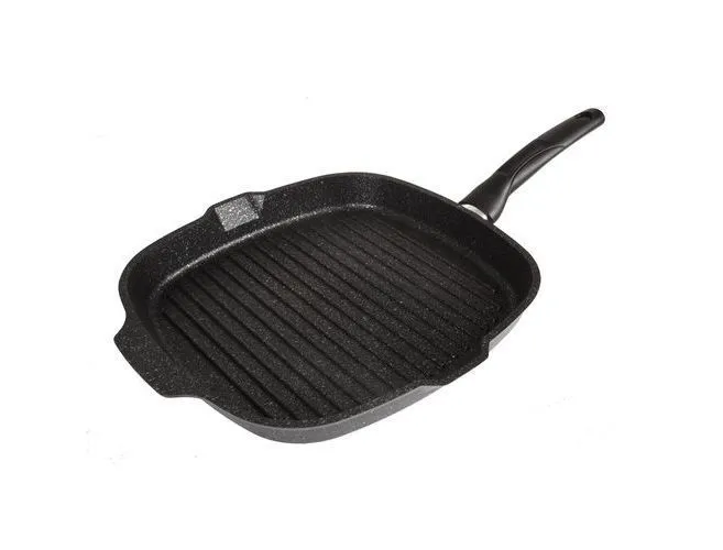 Сковорода-гриль квадратная 260х260мм с ручкой, АП (темный мрамор)