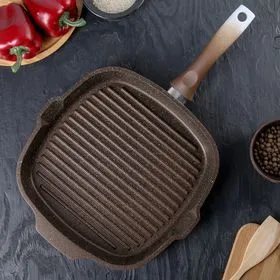 Сковорода-гриль квадратная 280х280мм с ручкой, АП (кофейный мрамор) сгкмк280а