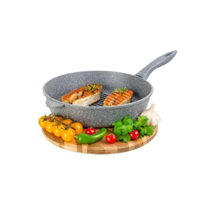 Сковорода - гриль круглая 28 см ГАРМОНИЯ ВКУСА "Серый мрамор", без крышки, ручка - 21 см, покрытие - 2-х слойное антипригарное (PFLUON серии COOCMARK)