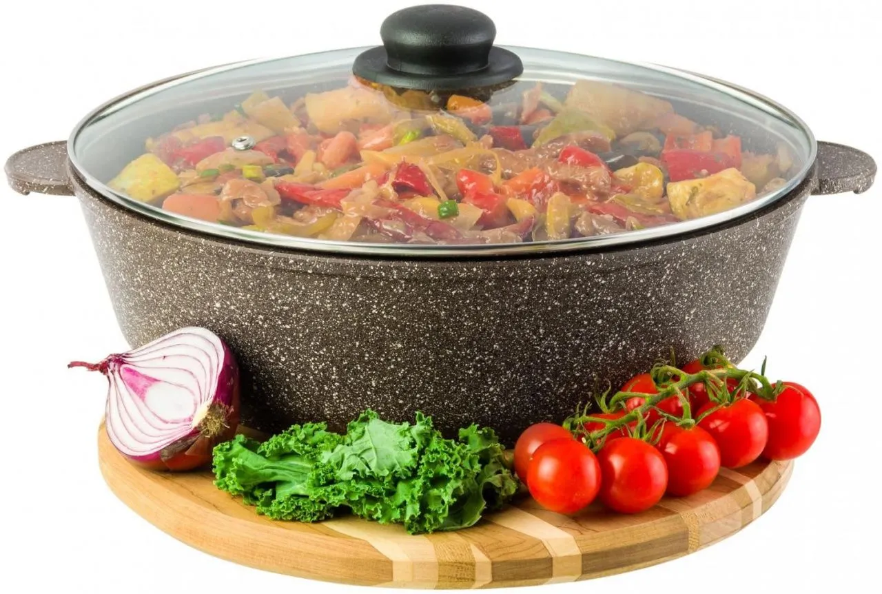 Жаровня (сотейник) 24 см ГАРМОНИЯ ВКУСА "Коричневый опал", 3 л, с крышкой ф24, покрытие - 2-х слойное антипригарное (PFLUON серии COOCMARK)