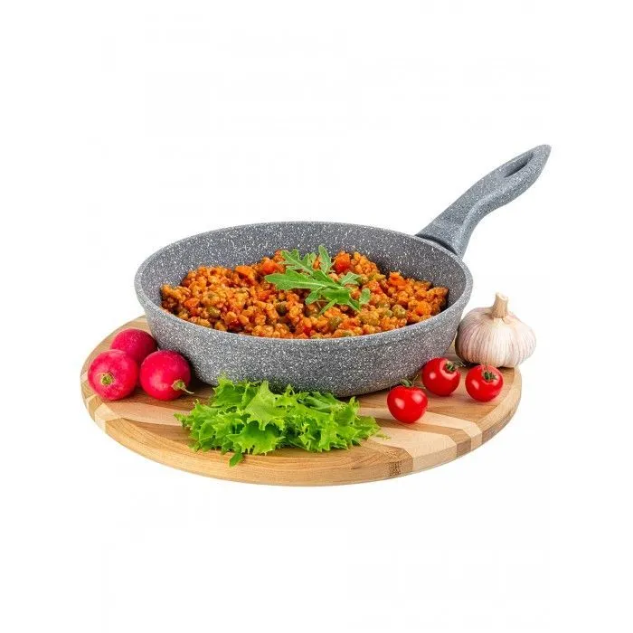 Сковорода глубокая 22 см ГАРМОНИЯ ВКУСА "Серый мрамор", без крышки, ручка - 15 см, покрытие - 2-х слойное антипригарное (PFLUON серии COOCMARK),
