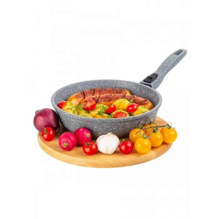Сковорода глубокая 20 см ГАРМОНИЯ ВКУСА "Серый мрамор", съемная ручка 20 см, без крышки, покрытие - 2-х слойное антипригарное (PFLUON серии COOCMARK)