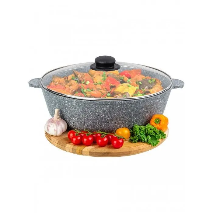 Жаровня (сотейник) 32 см ГАРМОНИЯ ВКУСА "Серый мрамор" 5,5 л, с крышкой ф32, покрытие - 2-х слойное антипригарное (PFLUON серии COOCMARK)