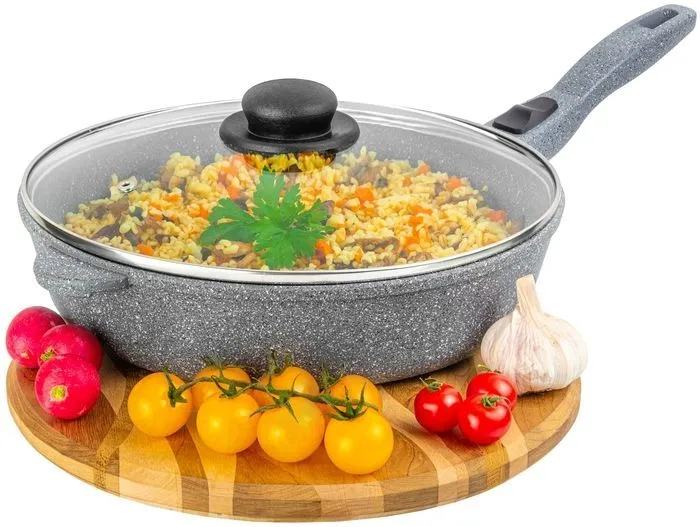 Сковорода глубокая 28 см ГАРМОНИЯ ВКУСА "Серый мрамор" 51,5*29*12 см, съемная ручка 20см, с крышкой ф28