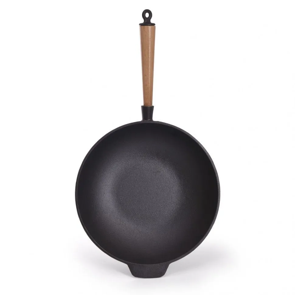 4140 FISSMAN Сковорода-вок 29x8,5см / 4л с деревянной ручкой(чугун) Индукция