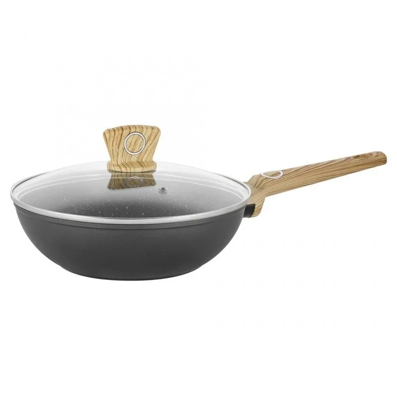 Вок Wood Marble со стеклянной крышкой, диаметр 24 см.