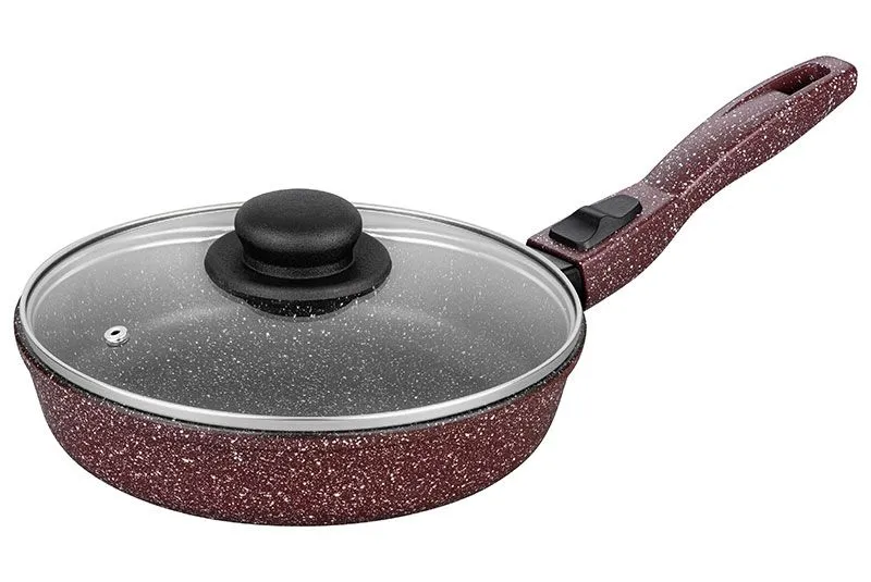 Сковорода глубокая 22 см ГАРМОНИЯ ВКУСА "Рубиновый дуэт", с крышкой ф22, ручка - 15 см