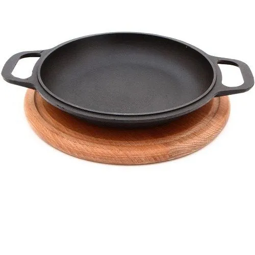 #Сковорода чугунная порционная д.200 с двумя ручками, с доской