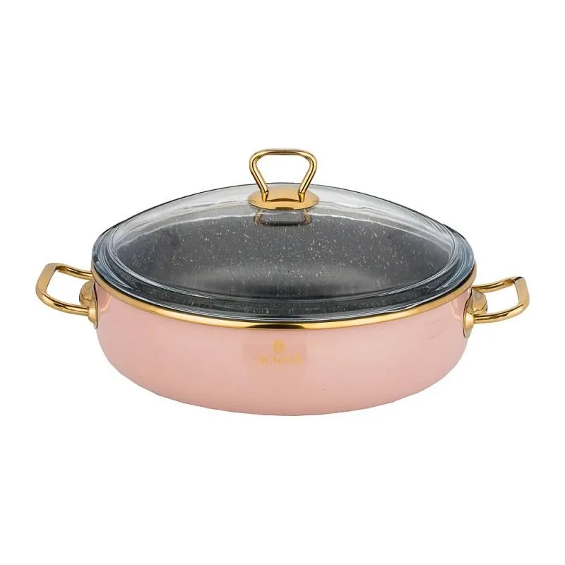 СОТЕЙНИК AGNESS ЭМАЛИРОВАННЫЙ СО СТЕКЛ. КРЫШКОЙ И АНТИПРИГАР. "МРАМОРНЫМ" ПОКРЫТИЕМ, СЕРИЯ ТЮДОР 26СМ / 3,5Л ЦВЕТ: ПУДРОВЫЙ