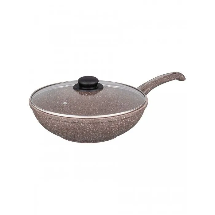 Сковорода ВОК 28 см ГАРМОНИЯ ВКУСА "Коричневый мрамор" ИНДУКЦИЯ , с крышкой ф28, ручка - 18 см, диаметр индукционного дна 14 см, 3-х слойное антиприга