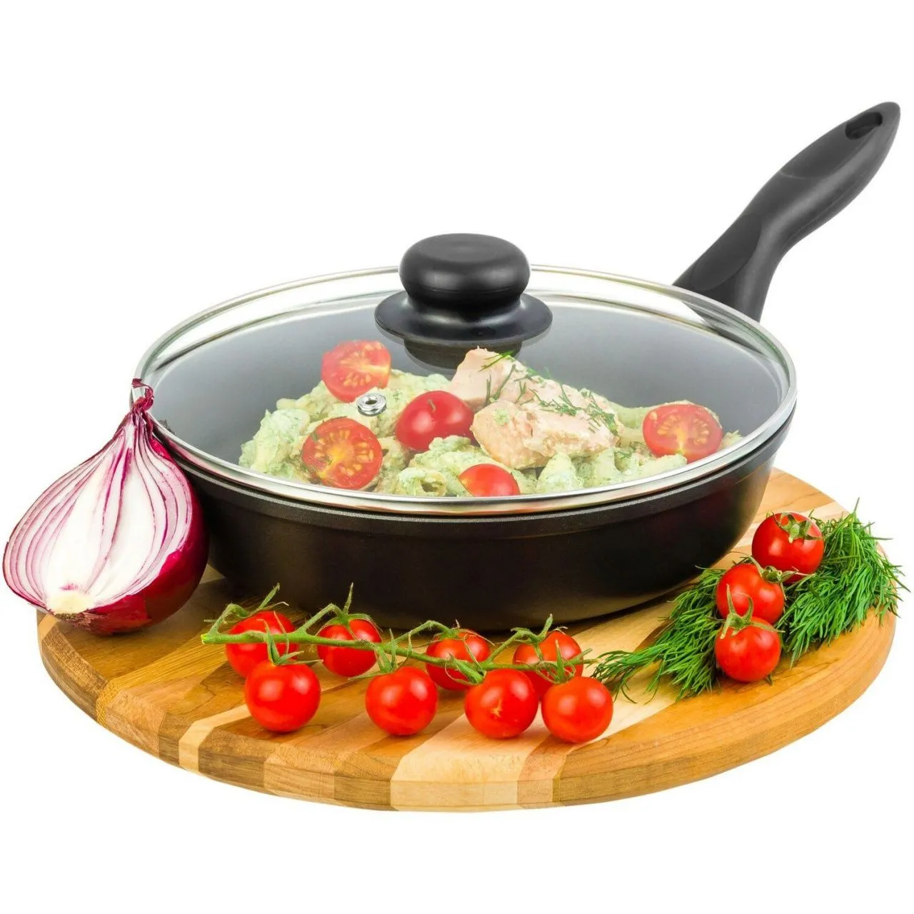 Сковорода глубокая 22 см ГАРМОНИЯ ВКУСА "Черный Оникс" 38*23*10,5 см, с крышкой ф22, ручка - 15 см, покрытие - 2-х слойное антипригарное (PFLUON серии