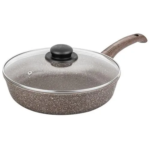 Сковорода глубокая 26 см ГАРМОНИЯ ВКУСА "Коричневый мрамор" ИНДУКЦИЯ 46*27*12,5 см, с крышкой ф26, ручка - 19 см, 3-х слойное антипригарное покрытие -