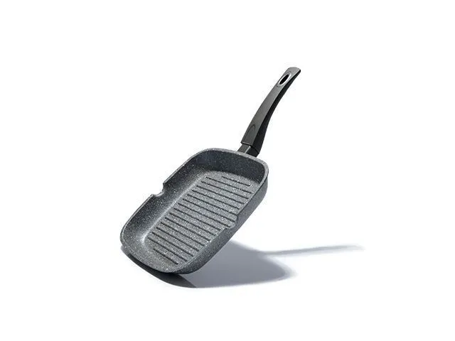 4977 FISSMAN Сковорода-гриль GREY STONE 24х4см квадратная (алюминий с антипригарным каменным покрытием Platinum) Рифленое дно; Со сливом; Ручка - бак
