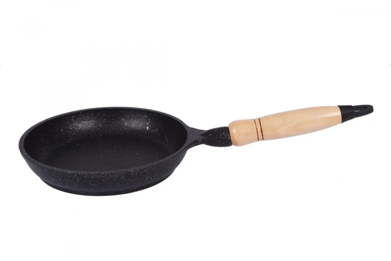 Сковорода 180/35мм с деревянной ручкой, АП (темный мрамор)