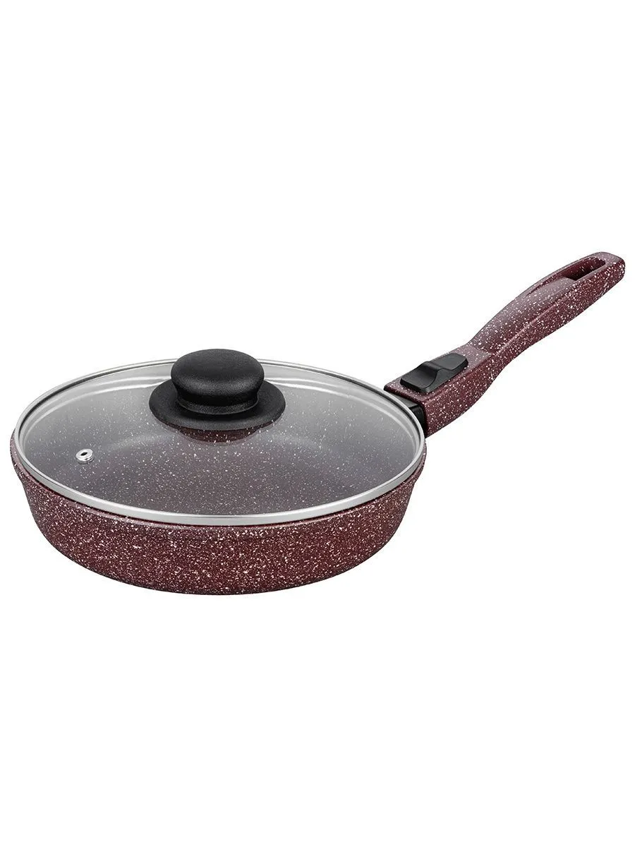 Сковорода глубокая 22 см ГАРМОНИЯ ВКУСА "Рубин" 38*23*10,5 см, с крышкой ф22, ручка - 15 см, высота сковороды - 5,2 см, высота до ручки - 9,5 см, диам