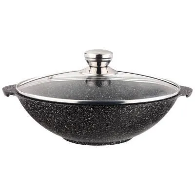 Сковорода 22см "Premium" ( mokko ) со стеклянной крышкой с несъемной ручкой с22902