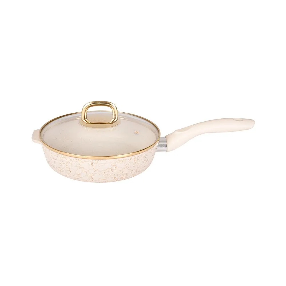 Сковорода глубокая 260мм с ручкой, со стекл. крышкой АП линия "Грация" ( белый/золото )