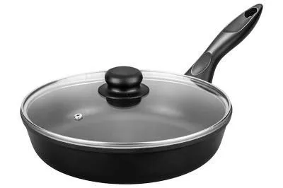 Сковорода глубокая 24 см ГАРМОНИЯ ВКУСА "Серый агат" 43,5*25*11,5 см, с крышкой ф24, ручка - 18,5 см, высота сковороды - 6 см, высота до ручки - 11 см