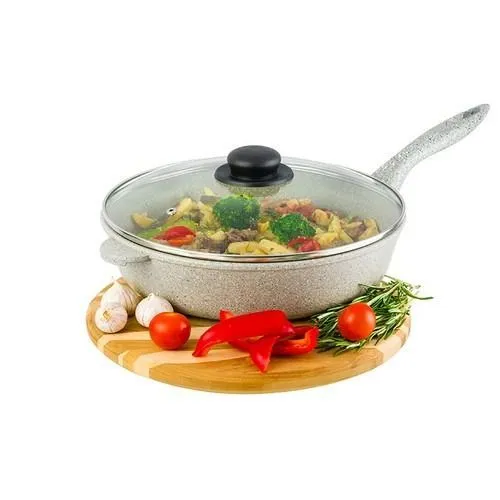 Сковорода глубокая 28 см ГАРМОНИЯ ВКУСА "Серый агат" 50*29*12,5 см, с крышкой ф28, ручка - 18,5 см, высота сковороды - 6,7 см, высота до ручки - 12 см