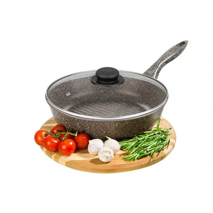 Сковорода - гриль круглая 26 см ГАРМОНИЯ ВКУСА "Коричневый опал" 46*27*12,5 см, с крышкой ф26, ручка - 19 см, высота сковороды - 6,5 см, высота до руч