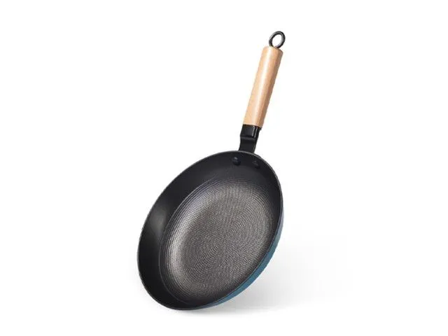 4000 FISSMAN Сковорода для жарки SEAGREEN 24x4,5см с деревянной ручкой (облегчённый эмалированный чугун c антипригарным покрытием XylanPlus)