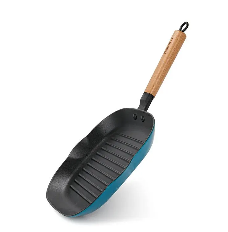 4046 Сковорода-гриль 28x3см квадратная с деревянной ручкой (эмалированный чугун)