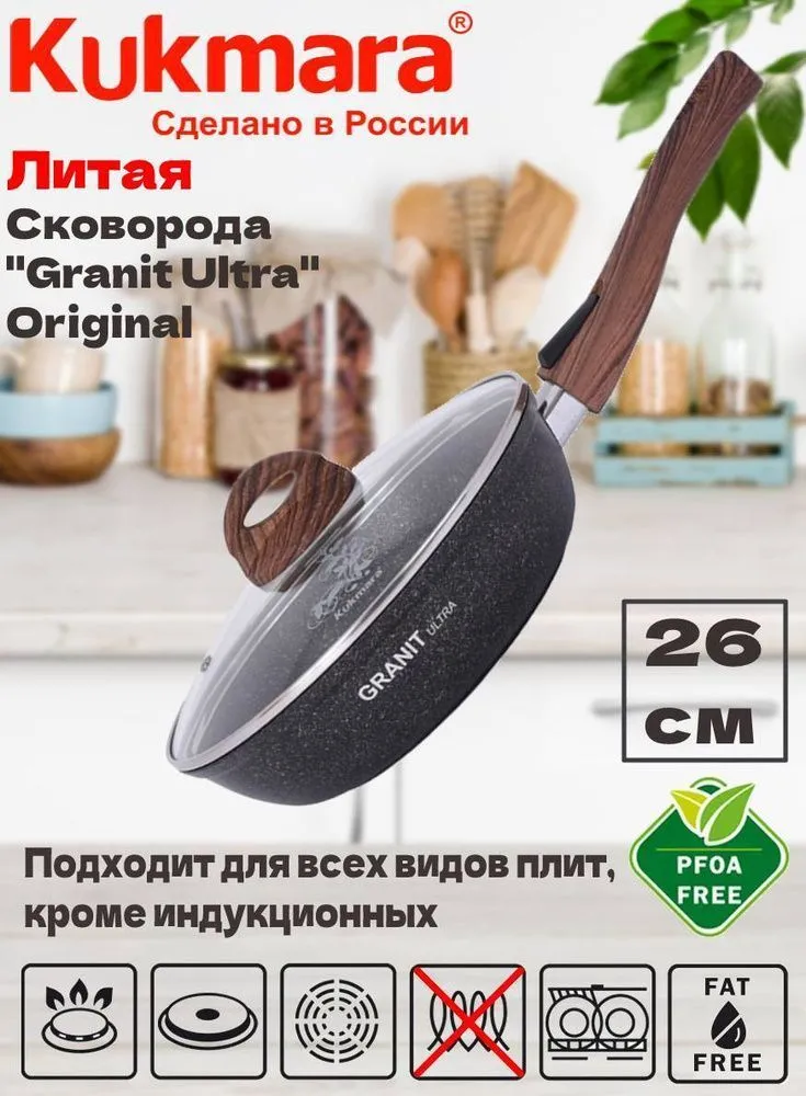 #Сковорода 260мм со съемной ручкой, стекл.крышкой, АП линия "Granit ultra" (original)