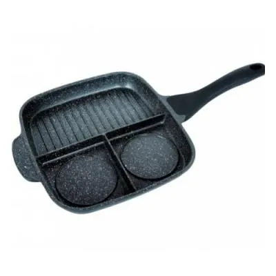 Сковорода глубокая 240мм с ручкой,со стекл.крышкой,АП линия "Грация" (черный/серебро)