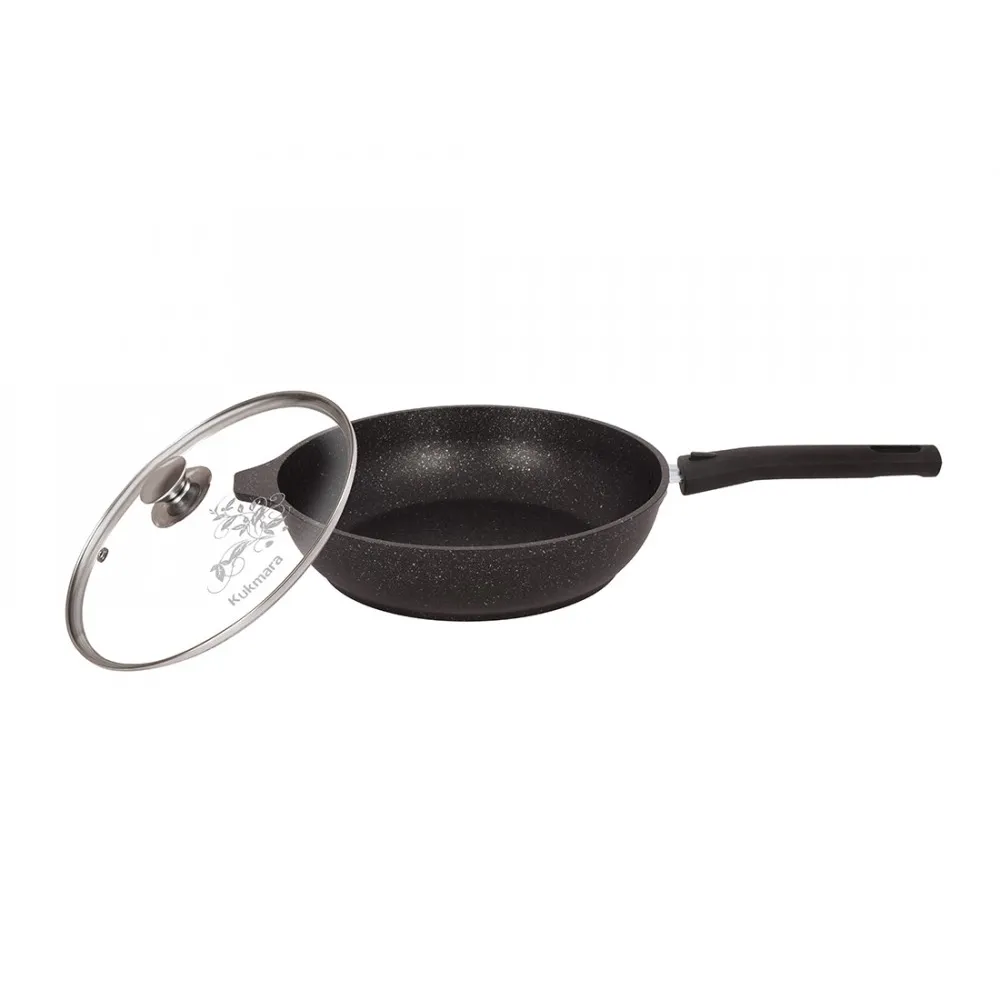 Сковорода 240/60мм со съемной ручкой, стекл. крышкой, АП (темный мрамор)