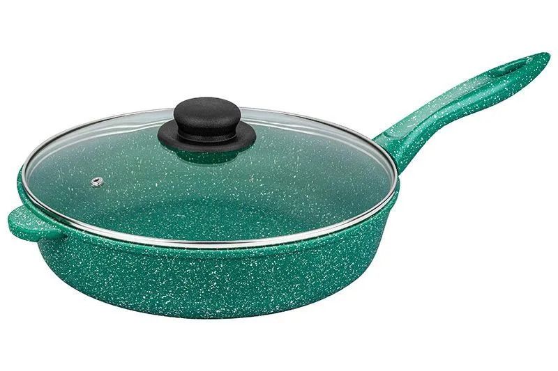 #Сковорода глубокая 28 см ГАРМОНИЯ ВКУСА "Изумруд" 50*29*12,5 см, с крышкой ф28, ручка - 18,5 см, высота сковороды - 6,7 см, высота до ручки - 12 см,