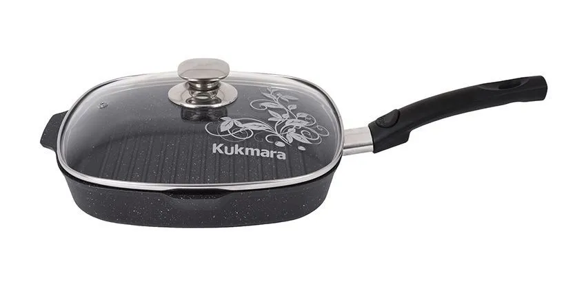 Сковорода глубокая 260мм с ручкой,со стеклянной крышкой, АП (темный мрамор) сгмт262а