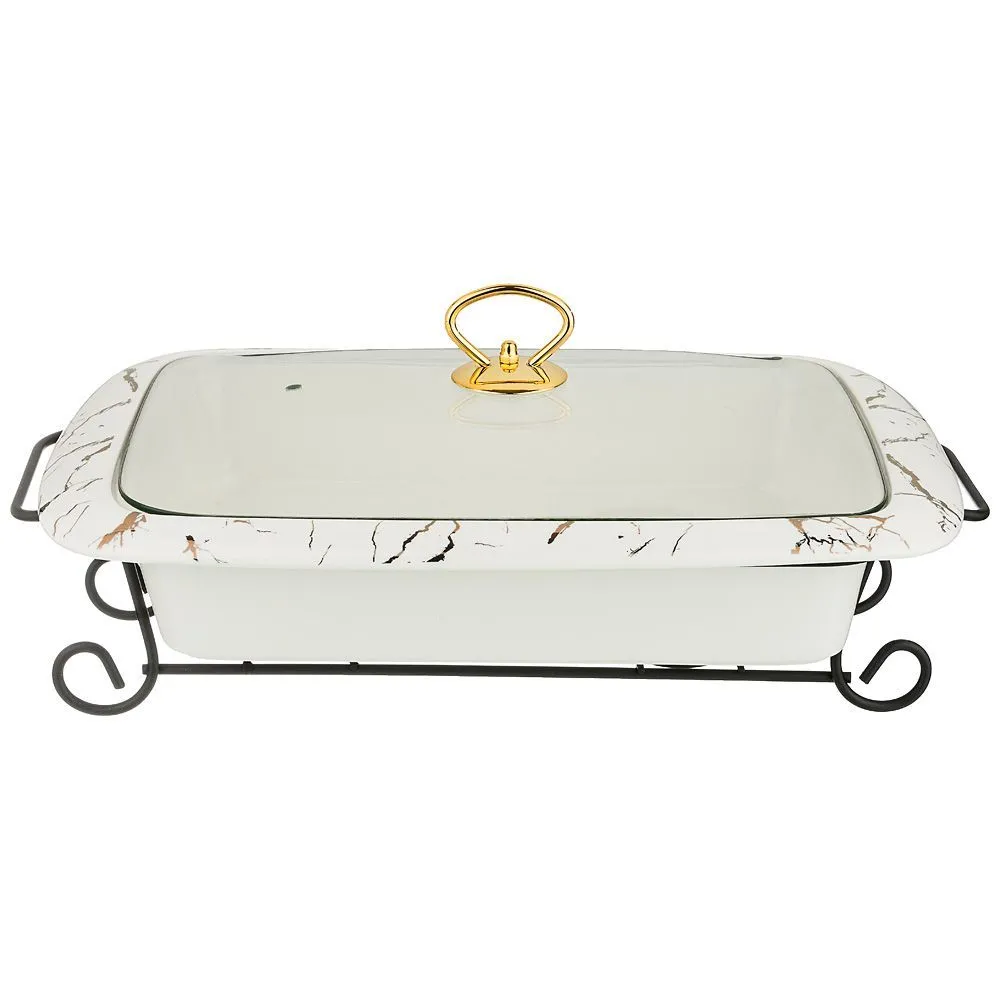 Мармит со стекл. крышкой на метал. подставке прямоуг."fantasy" 3,0л 41*27*11см 42-308
