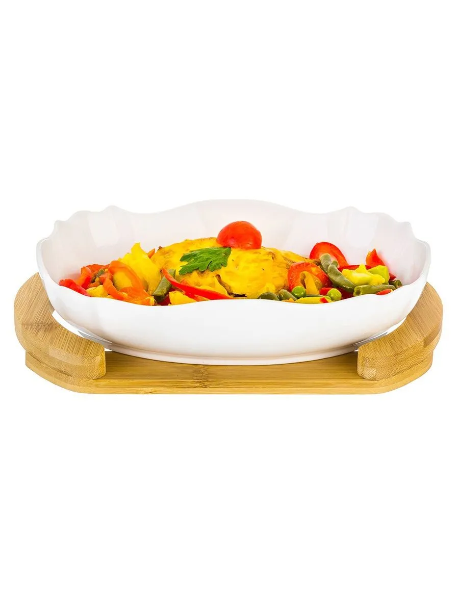 Блюдо для запекания и сервировки "Айсберг" 27,5*18,3*6,5 см 1 л, на деревянной подставке
