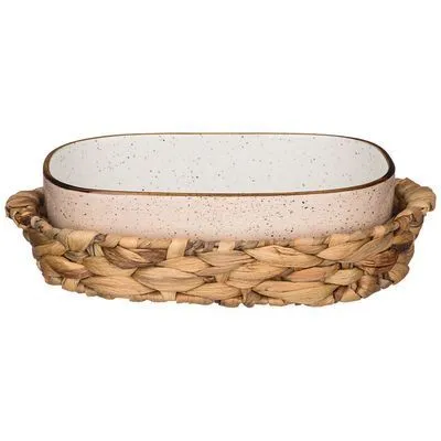 БЛЮДО ДЛЯ ЗАПЕКАНИЯ В ПЛЕТЕННОЙ КОРЗИНЕ BRONCO "NATURE" 29,5*20*8 СМ 1200 МЛ МЯТНОЕ 263-1089