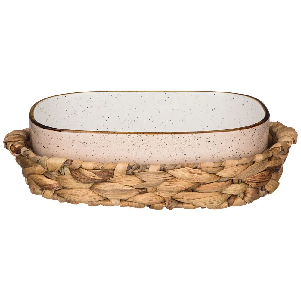 БЛЮДО ДЛЯ ЗАПЕКАНИЯ В ПЛЕТЕНОЙ КОРЗИНЕ BRONCO "NATURE" 29,5*20*8 СМ 1200 МЛ КРЕМОВОЕ
