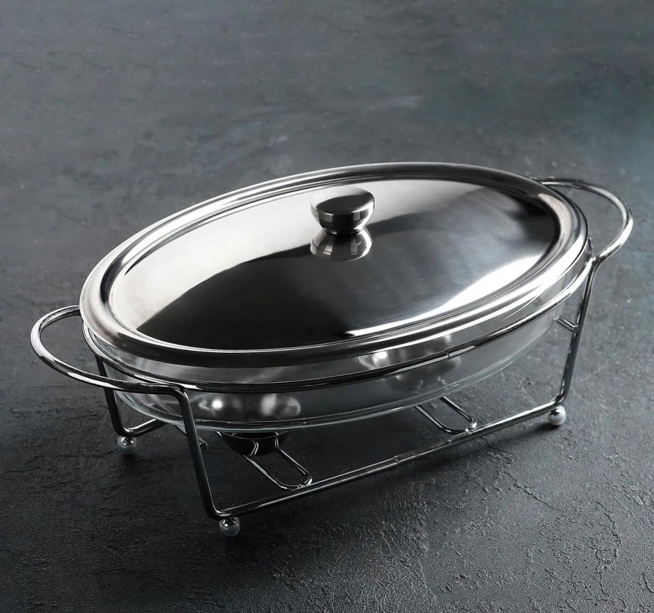 Мармит 3 л 44х25х17 см, овальный, жаропрочное стекло 4336553
