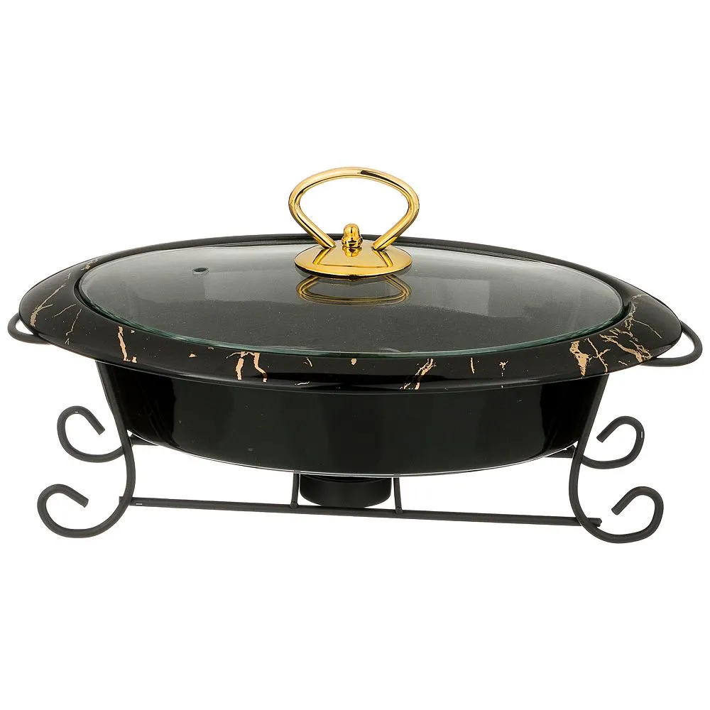 МАРМИТ СО СТЕКЛ.КРЫШКОЙ НА МЕТАЛ.ПОДСТАВКЕ ОВАЛЬНЫЙ "FANTASY" 0,95Л 29*19*10СМ, ЧЕРНЫЙ 42-305